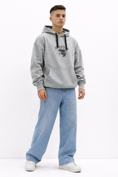Oversized Acid-Wash Graphic T-Shirt – Charcoal Grey